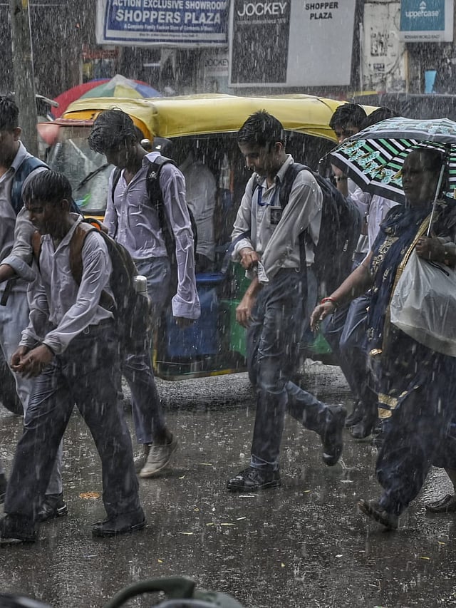 اسکول کے بچے، بارش میں بھی دوست نے دوست کا ساتھ نہ چھوڑا / قومی آواز / وپن