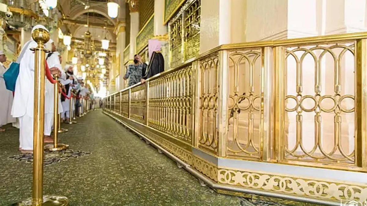 مسجد نبوی میں روضہ مبارک کے اطراف سونے اور تانبے کے نئے حصار کا افتتاح