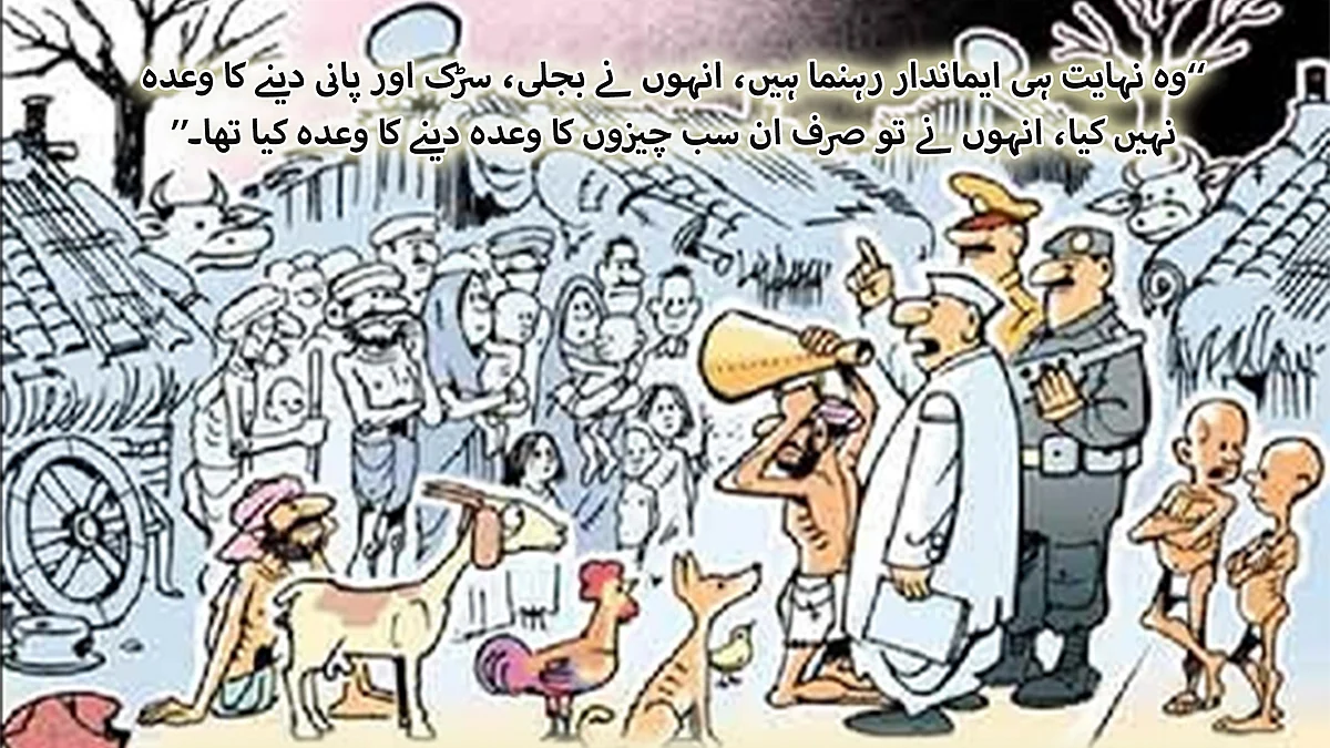 ’’اس نے جاتے جاتے کہا، مورکھ اگر میں گڑھے میں مرجاتا تو میرے لئے تو وہی قیامت کا دن ہوتا، بھلا میرے مرنے کے بعد مجھے اس سے کیا سروکار ہوتا کہ پوری دنیا میں قیامت آئی کہ نہیں آئی، بابا یہ کہہ کے چلا گیا مگر میں سوچتا رہا کہ بات تو بابا صحیح کہہ رہا تھا، مگر بابو جی ہم تو ان پڑھ ہیں اپ ہی بتاؤ کہ جو آپ نے انے والی قیامت کے اثار بتائے ہیں کیا وہ سب آج کل موجود نہیں ہیں‘‘؟ چندن نے معصومانہ انداز سے شرما جی سے پوچھا تو وہ یہ سوچنے میں غرق ہوگئے کہ جیوتشی بابا اور ان کی پارٹی کے لیڈر کے بیان میں آخر فرق کیا ہے؟ بقول غالب: