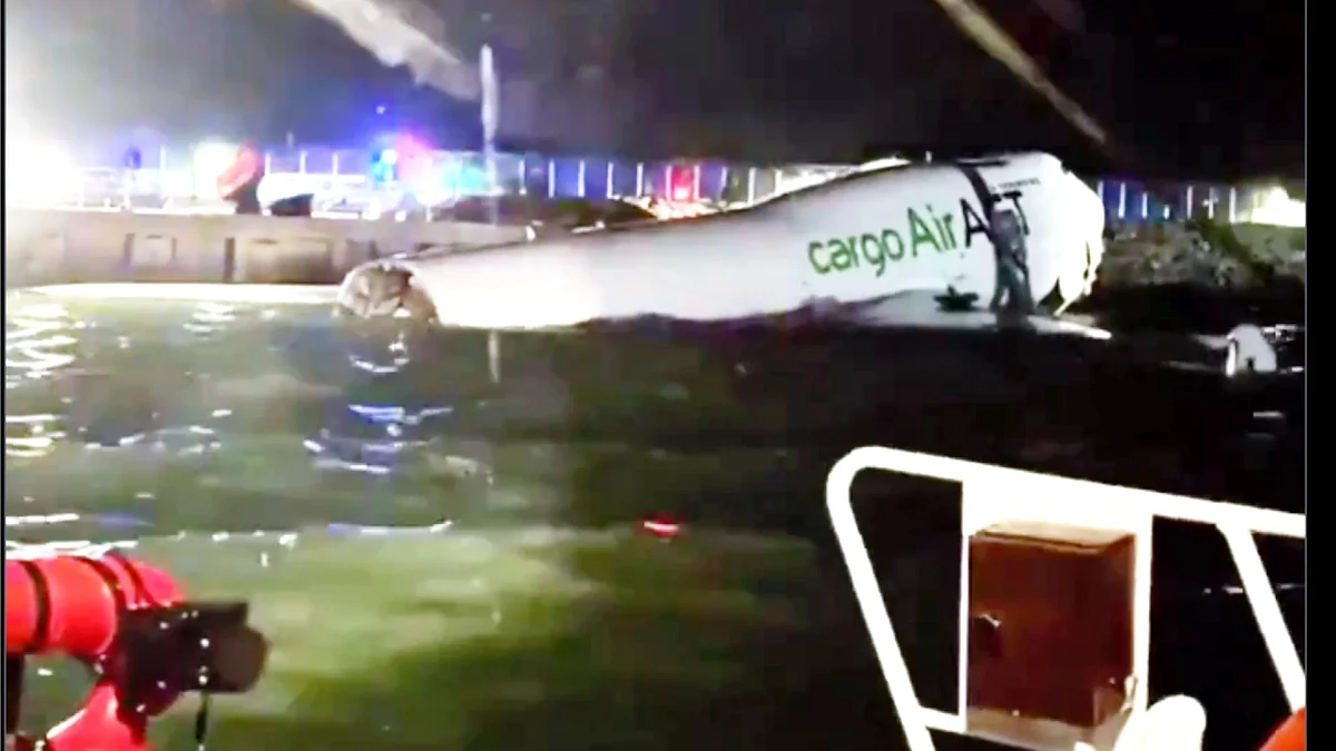 ہانگ کانگ ایئر پورٹ پر کارگو طیارہ رن وے سے پھسل کر سمندر میں جاگرا، دو افراد ہلاک