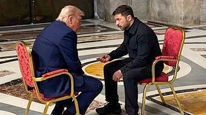 امریکی صدر ڈونالڈ ٹرمپ اور یوکرین کے صدر ولادیمیر زیلنسکی کی حال ہی میں وائٹ ہاؤس میں ملاقات ہوئی۔ اس ملاقات کے دوران ٹرمپ نے زیلنسکی کو روس کی پیشکش قبول کرنے کا مشورہ دیا۔ مزید برآں، ٹرمپ نے یہ بھی کہا کہ اگر یوکرین روس کی شرائط پر راضی نہیں ہوا تو پوتن یوکرین کو تباہ کر دیں گے۔