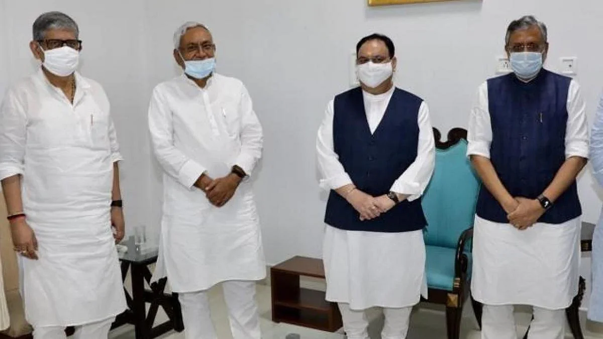 بی جے پی کے قومی صدر جے پی نڈا نے ہفتہ کے روز بہار کے وزیر اعلیٰ اور جے ڈی یو کے سربراہ نتیش کمار سے ملاقات کی۔ بی جے پی صدر نڈا پارٹی کے بہار معاملوں کے انچارج بھوپندر یادو، ریاستی صدر ڈاکٹر سنجے جیسوال اور نائب وزیراعلی سشیل کمار مودی کے ساتھ وزیر اعلی نتیش کمار سے ان کی سرکاری رہائش گاہ پر پہنچے تھے۔