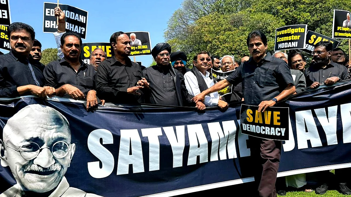 اڈانی معاملے اور کانگریس لیڈر راہل گاندھی کی پارلیمنٹ سے رکنیت کی منسوخی کے بعد اپوزیشن آج ملک بھر میں سڑکوں پر نکل آئی ہے۔ ملک کی راجدھانی دہلی میں بھی کانگریس سمیت اپوزیشن کے ارکان پارلیمنٹ نے کالے کپڑے پہن کر احتجاج کیا۔ اس احتجاج میں یو پی اے کی چیئرپرسن سونیا گاندھی نے بھی شرکت کی، دہلی میں اراکین پارلیمنٹ نے پارلیمنٹ ہاؤس سے وجے چوک تک احتجاجی ریلی نکالی۔
