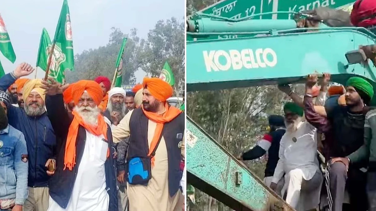 کسان دہلی چلو مارچ کے لیے تیار، شمبھو بارڈر پر سیمنٹ کی دیوار توڑنے کے لیے لایا گیا 'ہتھیار'