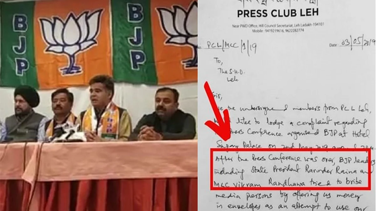 بتادیں کہ صوبہ لداخ کے لیہہ ضلع میں صحافیوں کی ایک انجمن 'پریس کلب لیہہ' نے 2 مئی کو بی جے پی کے لیڈروں پر انہیں رشوت دینے کا الزام لگایا تھا جس کے حقائق جاننے کے لئے مقامی انتظامیہ نے سی سی ٹی فوٹیج کو اپنی تحویل میں لے کر اس کی جانچ شروع کی تھی۔ متعلقہ تحقیقاتی ٹیم کو اس معاملے میں ٹھوس شواہد ملنے کے بعد ضلع الیکشن افسر اور ضلع مجسٹریٹ لیہہ اونی لواسہ، جنہوں نے اس معاملے میں تحقیقات کے احکامات صادر کیے تھے، نے گذشتہ روز اس معاملے میں ایف آئی درج کرنے کے لئے عدالت کی طرف رجوع کیا تھا۔