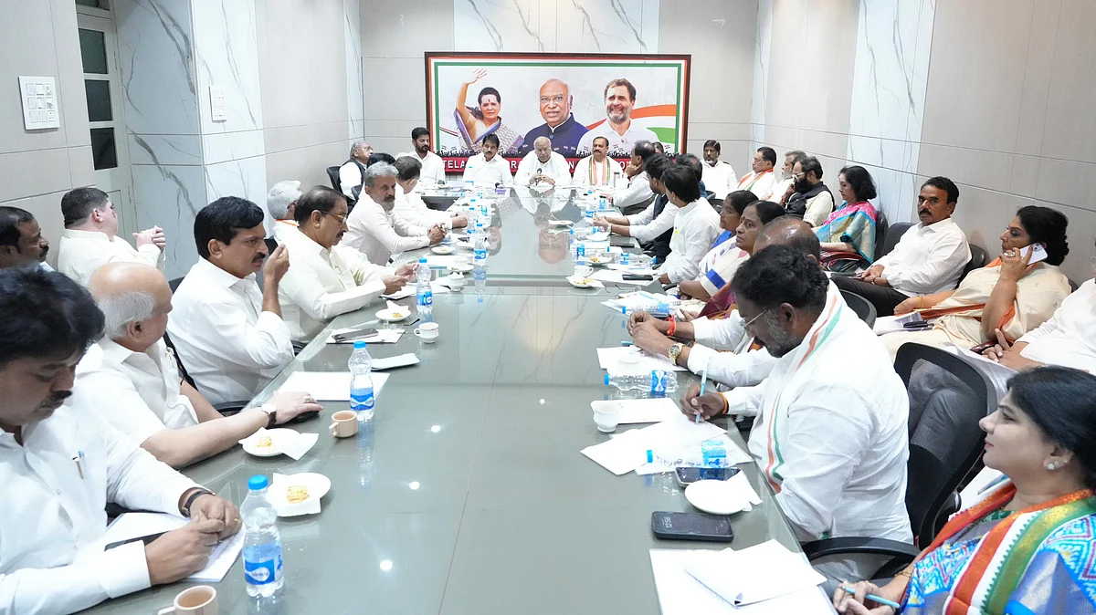 ملکارجن کھڑگے نے تلنگانہ میں پارٹی تنظیم کو مستحکم کرنے اور ریاستی حکومت کی فلاحی اسکیموں پر عملدرآمد کا جائزہ لیا۔ اجلاس میں ریونت ریڈی و دیگر اعلیٰ لیڈران شریک ہوئے