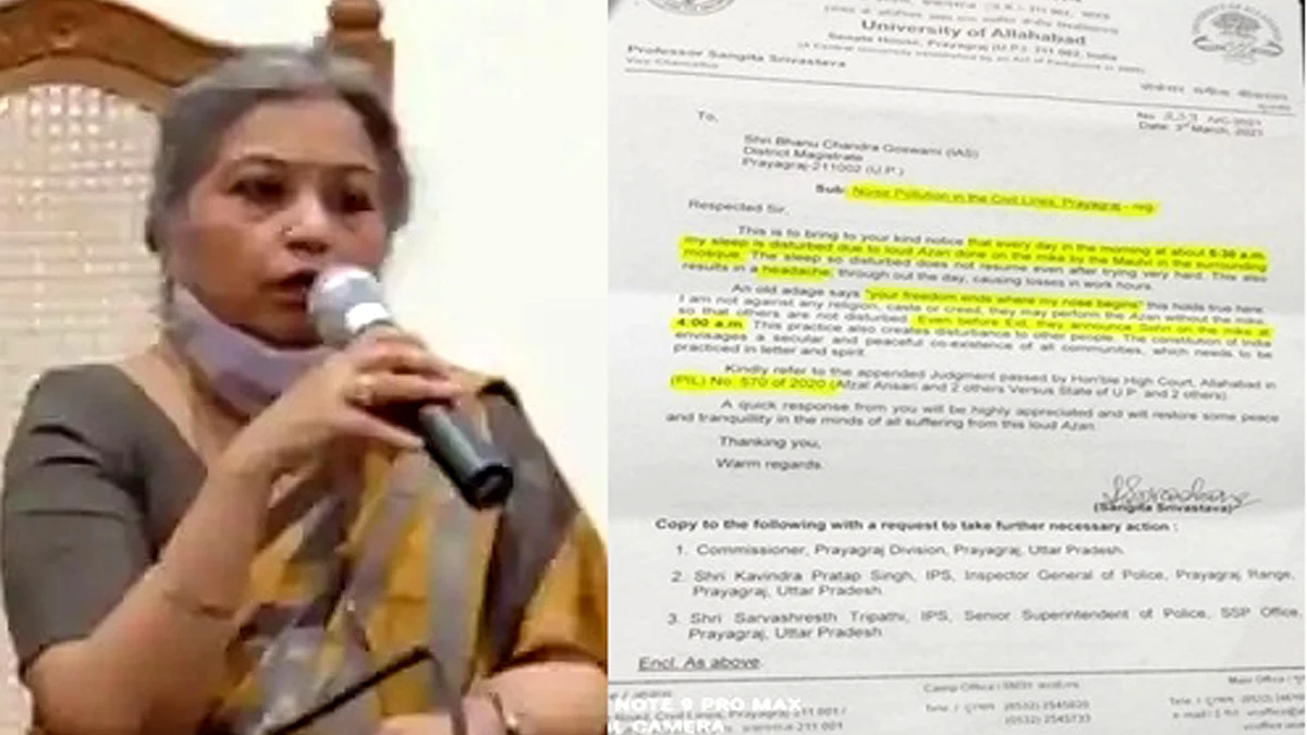 الٰہ آباد سنٹرل یونیورسٹی کی وائس چانسلر پروفیسر سنگیتا شریواستو نے فجر کی اذان سے اپنی نیند میں خلل پڑنے اور پھر نیند مکمل نہ ہونے سے سر درد کی جو شکایت ضلع مجسٹریٹ (ڈی ایم) کو لکھے خط میں کی تھی، اسے مسجد کمیٹی نے دور کر دیا ہے۔ وائس چانسلر کے قریب موجود مسجد کی کمیٹی نے لاؤڈ اسپیکر کا منھ پروفیسر سنگیتا شریواستو کے گھر کی طرف سے گھما کر دوسری طرف کر دیا ہے۔ ساتھ ہی مسجد کمیٹی نے پروفیسر سنگیتا سے معافی مانگتے ہوئے کہا ہے کہ اب انھیں کوئی تکلیف نہیں ہونے دی جائے گی۔ علاوہ ازیں مسجد کمیٹی نے یہ بھی کہا کہ جب وائس چانسلر پریاگ راج واپس لوٹیں گی تو بات چیت کر کے انھیں مطمئن کیا جائے گا۔
