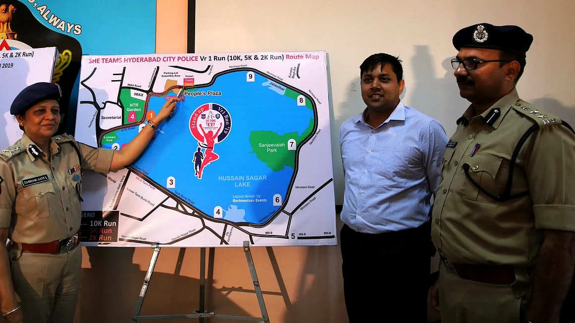 حیدرآباد سٹی ٹریفک پولس کی جانب سے اس موقع پر ٹریفک کے سلسلہ میں وسیع انتظامات کیے گئے۔ 17 مارچ کو صبح ساڑھے چھ بجے گورنر نے اس رن کو جھنڈی دکھائی۔ 10 کیلو میٹر کی دوڑ صبح ساڑھے چھ بجے۔پانچ کیلو میٹر کی دوڑ صبح 6 بجکر 40 منٹ اور دو کیلومیٹر کی دوڑ کا آغاز صبح 6 بجکر 45 منٹ پر ہوا۔ محکمہ پولس کے پانچ بینڈس نے دوڑ کے راستوں پر مظاہرہ کیا۔ اس دوڑ کا مقصد خواتین کی سلامتی کا پیغام پہنچانا ہے۔ گورنر نے بھی دوڑ میں حصہ لیا۔