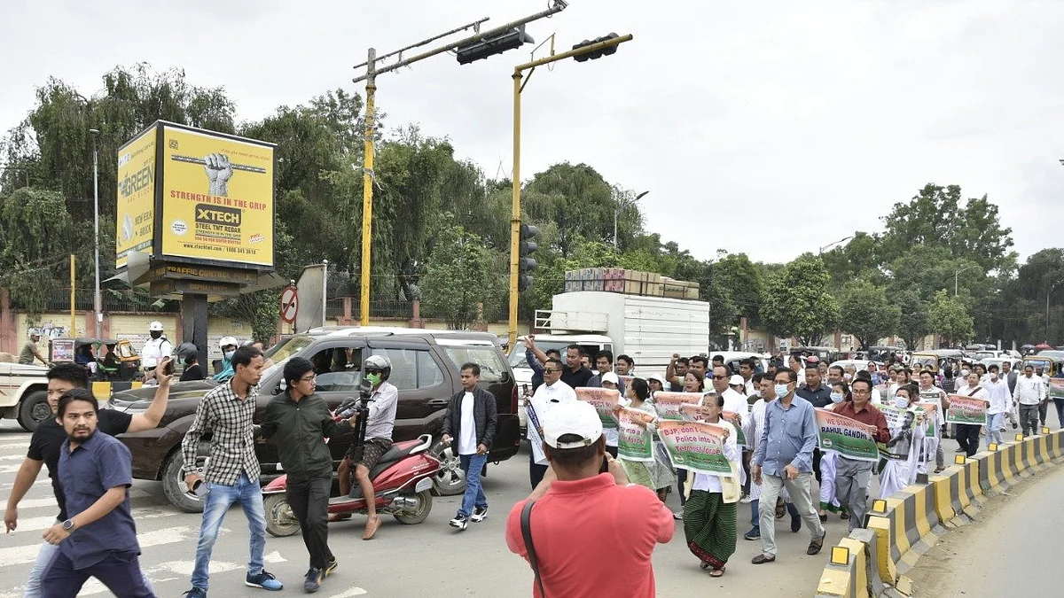 منی پور میں کانگریس کارکنان کا مظاہرہ